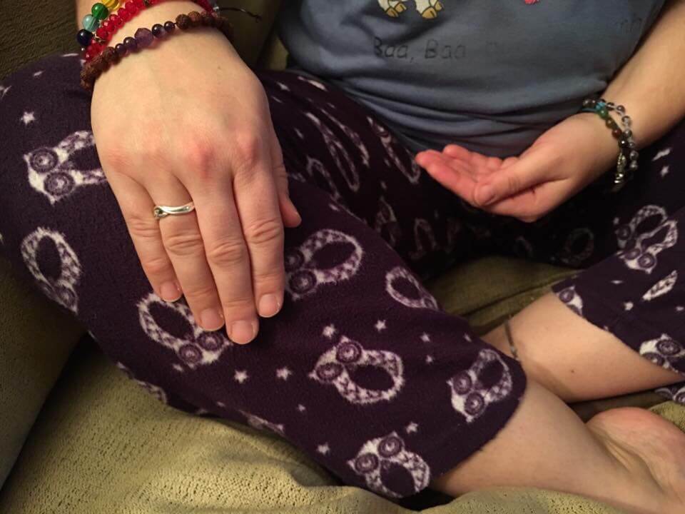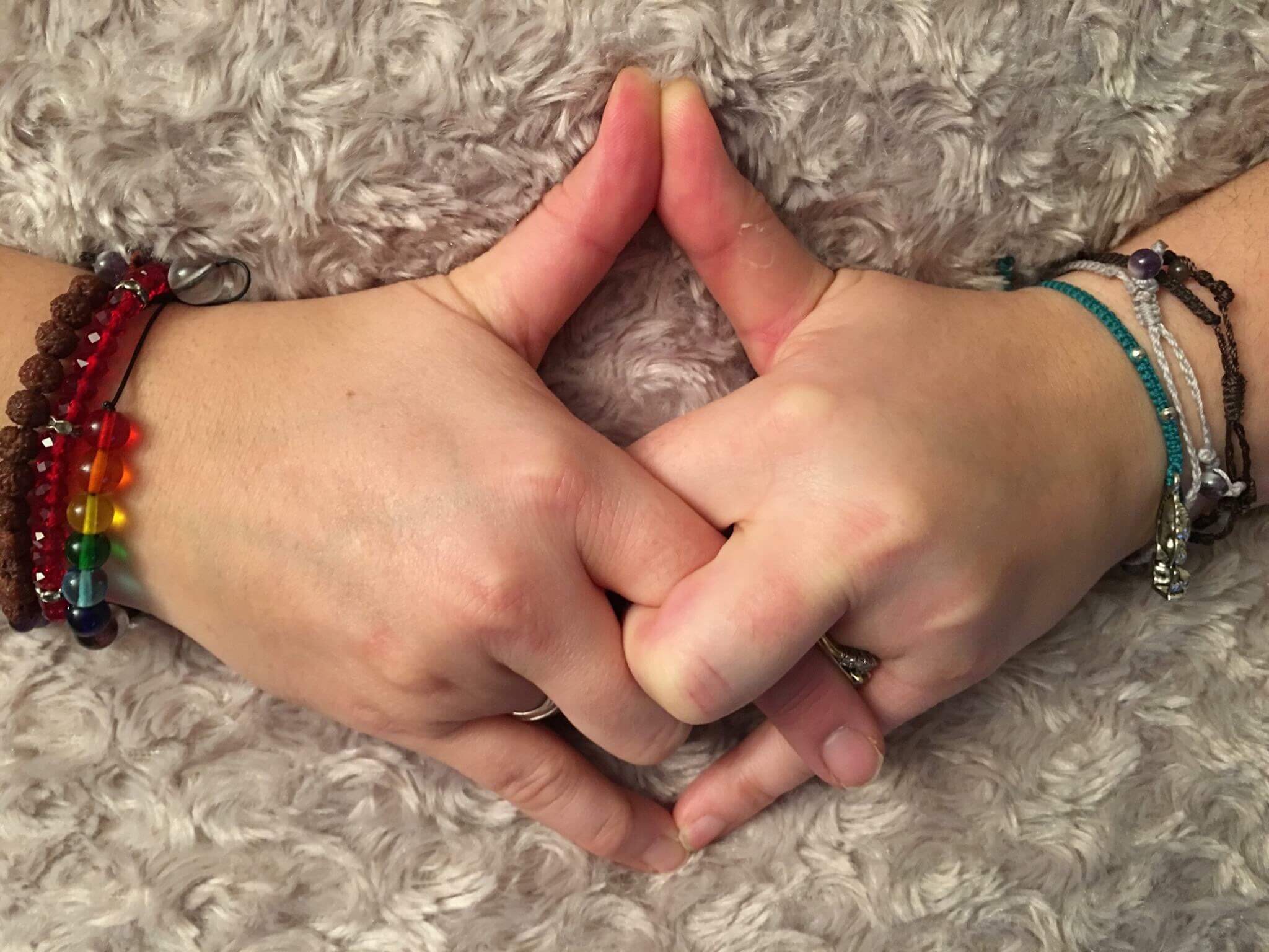 This mudra is good for grounding yourself both physically and mentally. If you struggle to become still for meditation – try this mudra, it can help you focus on coming to a place of peace. It is performed with both hands – excuse the pjs!